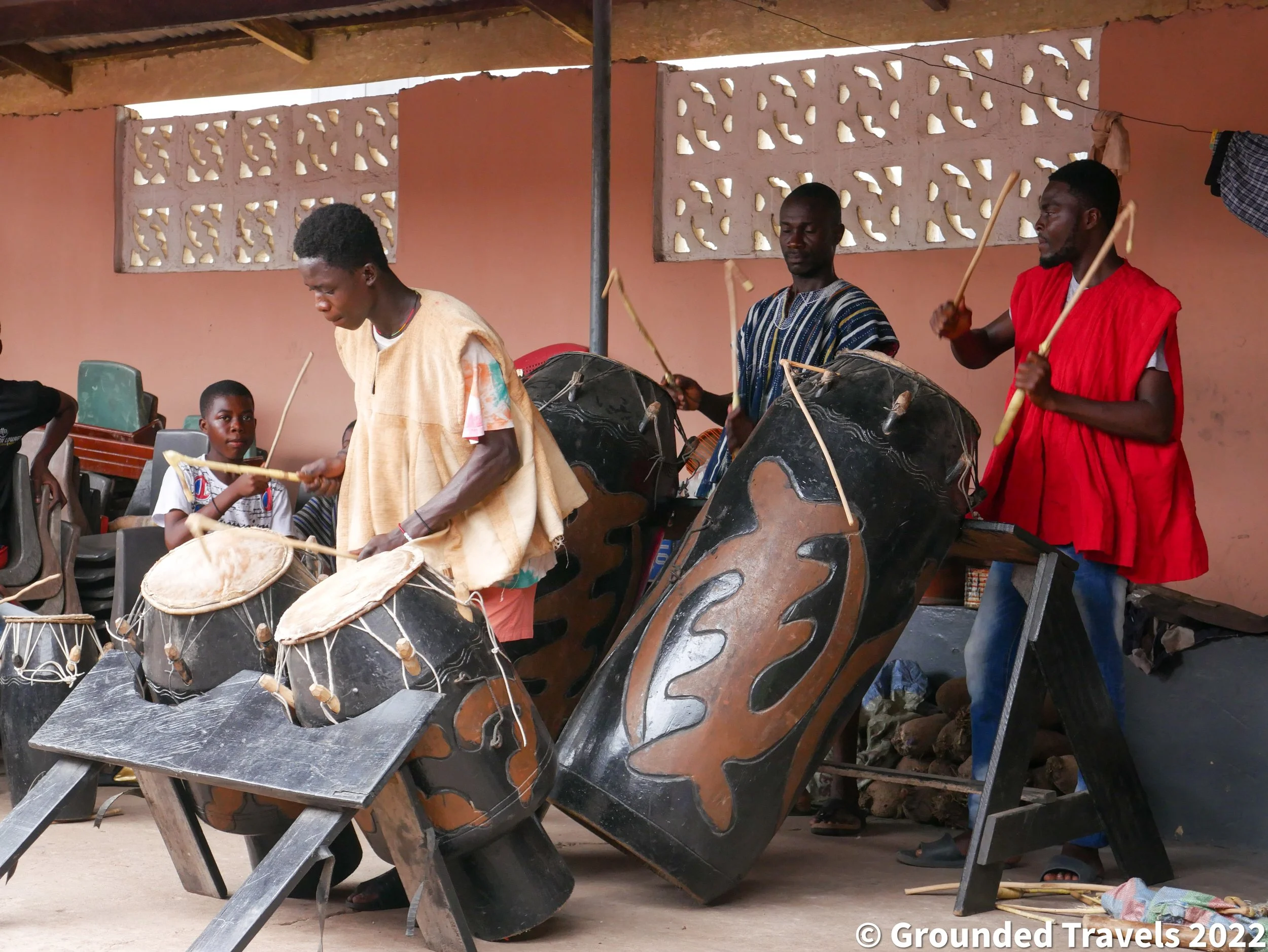 A lesson on the African drums, given by village locals who tell a story passed through generations.